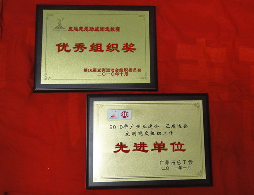 領導的鼓勵激發(fā)起“廣藥潘高壽志愿者助威團”全體人員的進一步熱情,團員加倍努力。在10月23、24日的晉級比賽中,“廣藥潘高壽志愿者助威團”在“機關企事業(yè)單位版塊志愿助威團晉級賽”中,在全省近100支團隊中獲得第8名的好成績,并獲亞組委頒發(fā)“最佳組織獎”榮譽,新年伊始,又再度獲得廣州市工會亞運會頒授“亞運亞殘運文明觀眾組織先進集體”獎。
